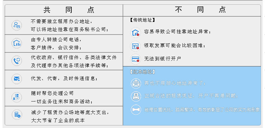 A:1.創(chuàng)業(yè)者不需要獨立租用辦公地址,可以將地址掛靠在商務(wù)秘書公司,降低了成本;